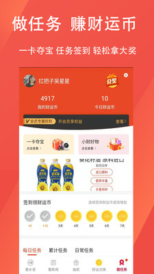「签到积分」新增财运币玩法,阅读新闻看视频还可以换取财运币和积分,进一步兑换抽奖机会,每日签到更有额外奖励