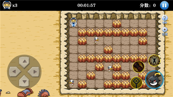 丰富的道具选择:除了常规炸弹外,游戏还提供冰冻炸弹、连锁炸弹等特殊道具,每种道具都有独特的爆炸效果和使用技巧。