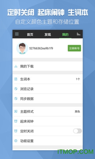 定时关闭功能让学习更人性化,起床闹钟和生词本提醒帮助养成良好学习习惯,支持自定义颜色主题和文字存储;