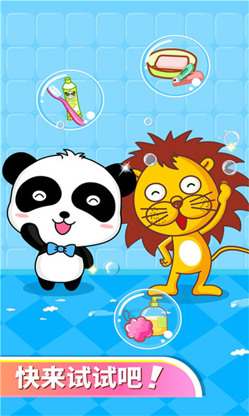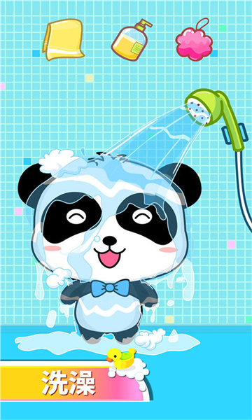 洗澡:哈哈,动物伙伴来洗澡,好多的肥皂泡泡,左扭扭,右扭扭,泡泡不见了,哇哦~还有blingbling的小星星~真漂亮。洗澡环节包含多个互动点,从调节水温到涂抹沐浴露,让孩子了解完整的洗澡流程。完成任务后会获得闪亮的星星奖励,激励孩子继续学习。