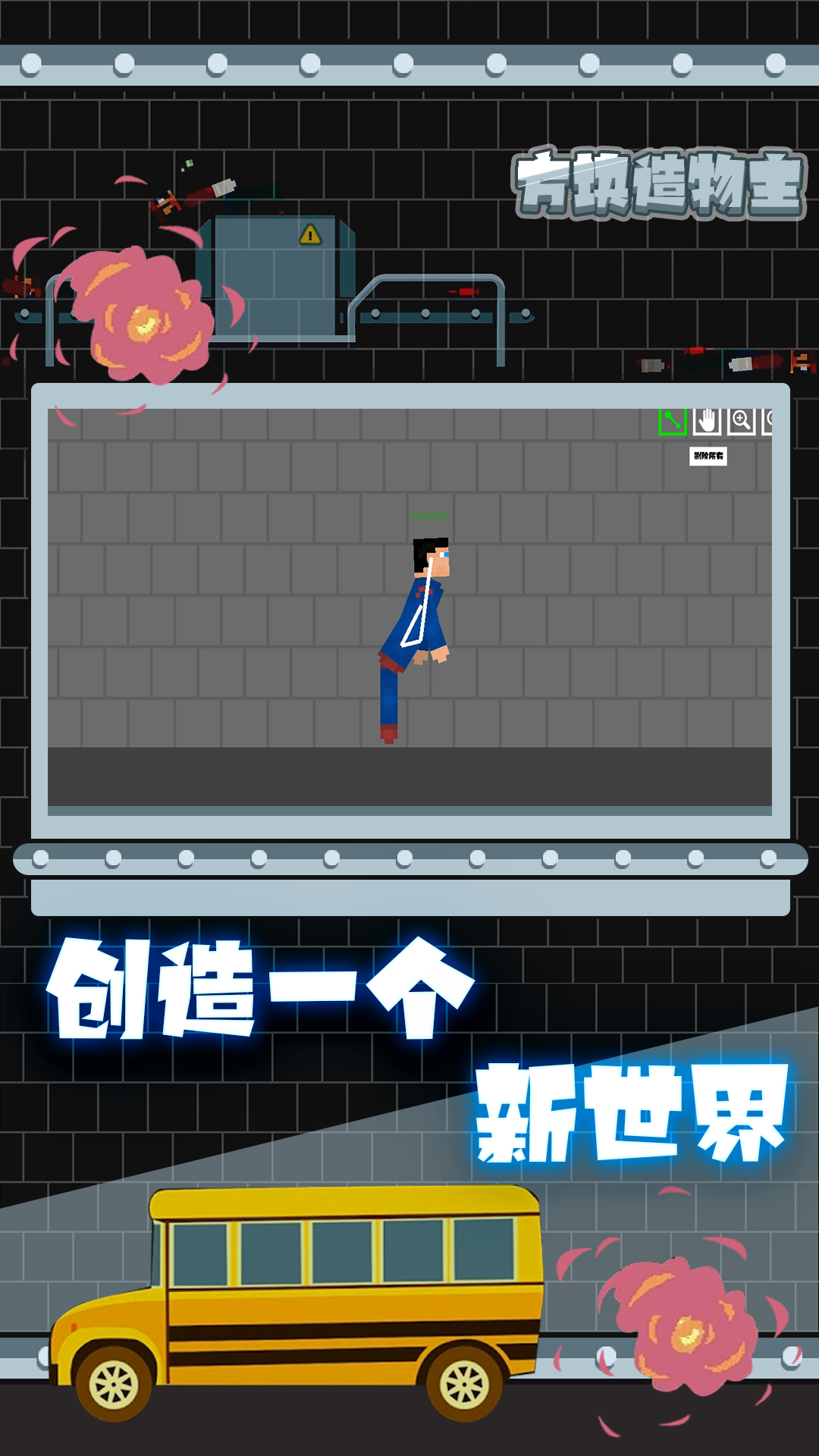 《方块造物主》是一款充满创意的像素风格沙盒游戏,为玩家打造了一个自由探索与创造的虚拟世界。在这个由方块构成的天地里,你可以化身造物主,用想象力搭建房屋、车辆甚至复杂机械,也能瞬间化身破坏者,用爆炸与撞击释放压力。游戏采用简单直观的操作方式,无论是建造精密的坦克模型,还是制造一场绚丽的爆破秀,都能通过拖放点击轻松实现。独特的物理引擎让每个方块都拥有真实反馈,当你推倒精心搭建的积木塔时,坍塌的轨迹会带来意想不到的喜剧效果。