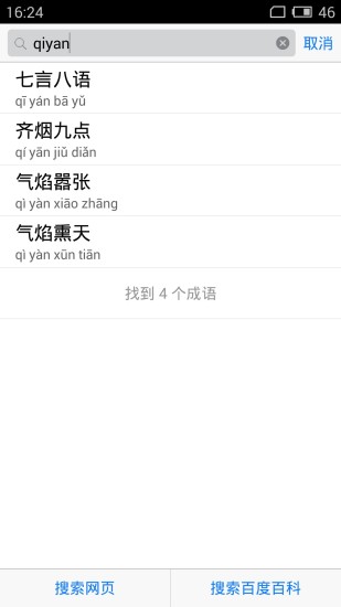 成语PK:在线对战模式,与其他用户比拼成语储备量。