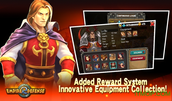 游戏中设计更加周到完美的地方,在商店里玩家还可以购买到宝物,宝物还分为武器,防具,坐骑,饰品四大类,玩家可以购买宝物給予武将装备,并且宝物还可以强化,而强化的结果竟然是通过老虎机来决定的。这个独特的强化系统为游戏增添了更多趣味性和随机性。游戏中每个关卡中系统又设置了休闲、熟练、精通、英雄四种难度模式,其中休闲和熟练难度在一开始会为玩家开放的,但是想要体验后面两种难度就必须要先将前面的难度模式通关才可。游戏在竞技场模式中,玩家输入自己的昵称,进入任一服务区,就可以跟其他玩家进行PK。竞技场根据玩家表现设有排名,还有每日任务和活动以及成就的游戏设置,使这款游戏的互动性大大提高。
