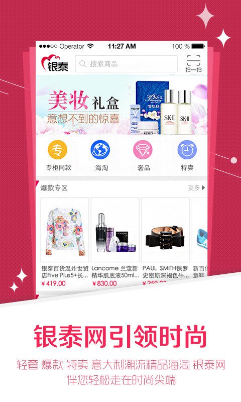 《银泰网》是一款引领时尚潮流的在线购物平台,致力于为用户提供高品质的购物体验。在这里,您可以轻松选购来自全球的奢侈品、服饰、珠宝首饰等各类时尚单品,所有商品均由品牌专柜直供,确保正品品质。平台不仅汇聚了丰富的商品种类,还定期推出超值优惠活动,让您以更实惠的价格享受高端购物乐趣。无论是日常穿搭还是特殊场合的装扮需求,银泰网都能满足您对时尚生活的追求。
