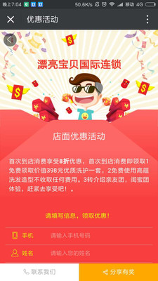 您可以将所在店的VIP资格分享给亲朋好友,不仅能让他们享受专属优惠,还能为自己赢得丰厚奖励。美咖还提供全面的账户管理功能,包括消费记录查询、服务评价和在线预约等,让您轻松掌握每一笔消费详情。平台会实时推送所在店面的最新促销活动,确保您不错过任何优惠。如需预约服务,只需一键拨打商家电话,即可快速安排您的美容护理计划。