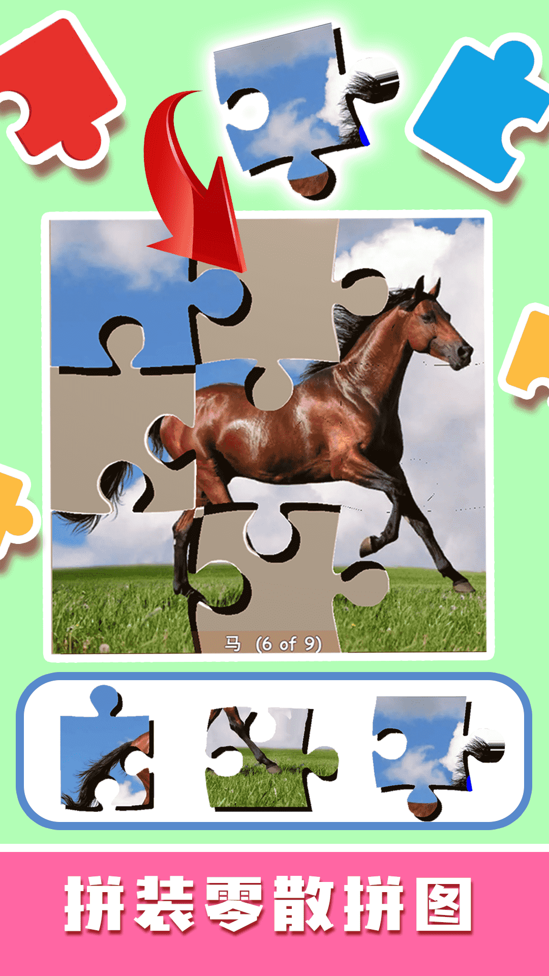 这是一款专为儿童打造的休闲益智游戏,拥有丰富多样的关卡内容和多种游戏模式。游戏采用清新可爱的卡通画风,玩法简单有趣,孩子们可以轻松上手。无需联网的特性让游戏随时随地都能畅玩,家长再也不用担心网络问题影响孩子游戏体验。游戏还特别设计了适合不同年龄段孩子的难度梯度,从简单的9块拼图到复杂的36块拼图,循序渐进地培养孩子的专注力和空间认知能力。