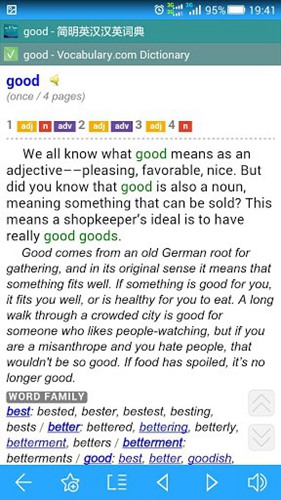 查询界面支持多种显示方式,用户可以根据个人喜好调整。点击发音按钮可以听取标准发音,长按单词可以查看详细释义和相关例句。软件还支持查询历史记录功能,方便复习之前查找过的单词。