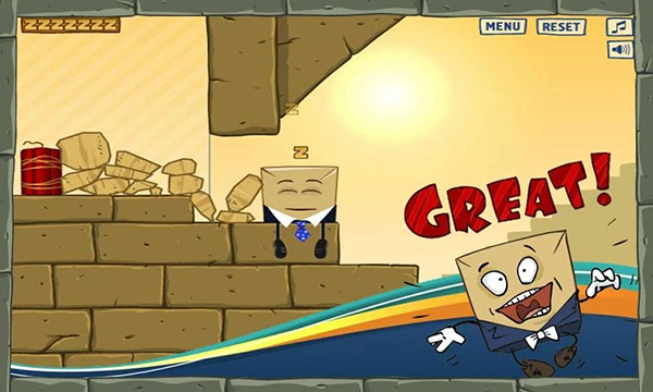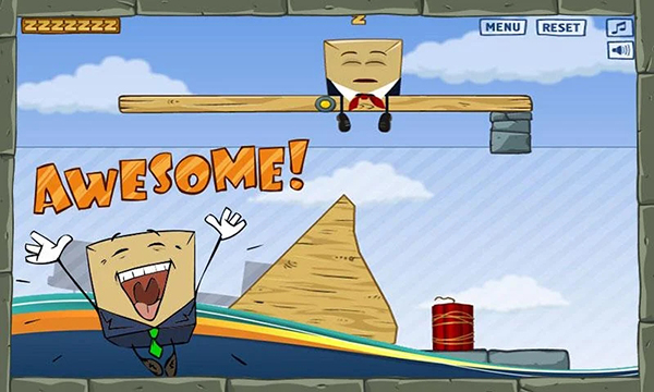 在快叫醒盒子先生WakeUptheBox中,玩家需要在绘图区域自由绘制各种几何形状,这些形状会立即变成具有物理特性的实体。通过合理绘制不同大小、形状的物体,利用重力、碰撞等物理原理,让它们滚动、摆动或弹跳,最终将盒子先生从屏幕边缘推落。游戏操作简单直观,只需用手指在屏幕上滑动即可完成绘制。当盒子先生成功从屏幕掉落时,玩家就顺利通过了当前关卡。随着游戏进程推进,关卡难度会逐渐增加,需要玩家发挥更多创意来解决问题。
