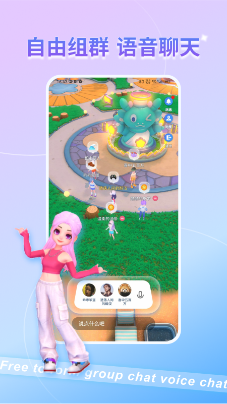 创造自己的世界,自由发挥、自我实现;用户不仅能够自定义虚拟形象,还能设计和建造专属的虚拟空间。从家具摆放到场景设计,每个细节都能体现用户的个性和创意,打造真正属于自己的数字家园。