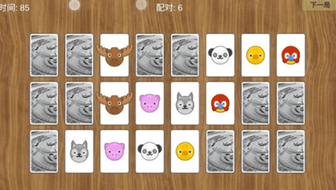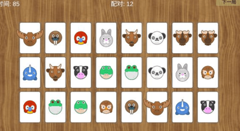 1、游戏开始时,玩家面前会放置一系列面朝下的动物卡片,每张卡片都隐藏着不同的动物图案。