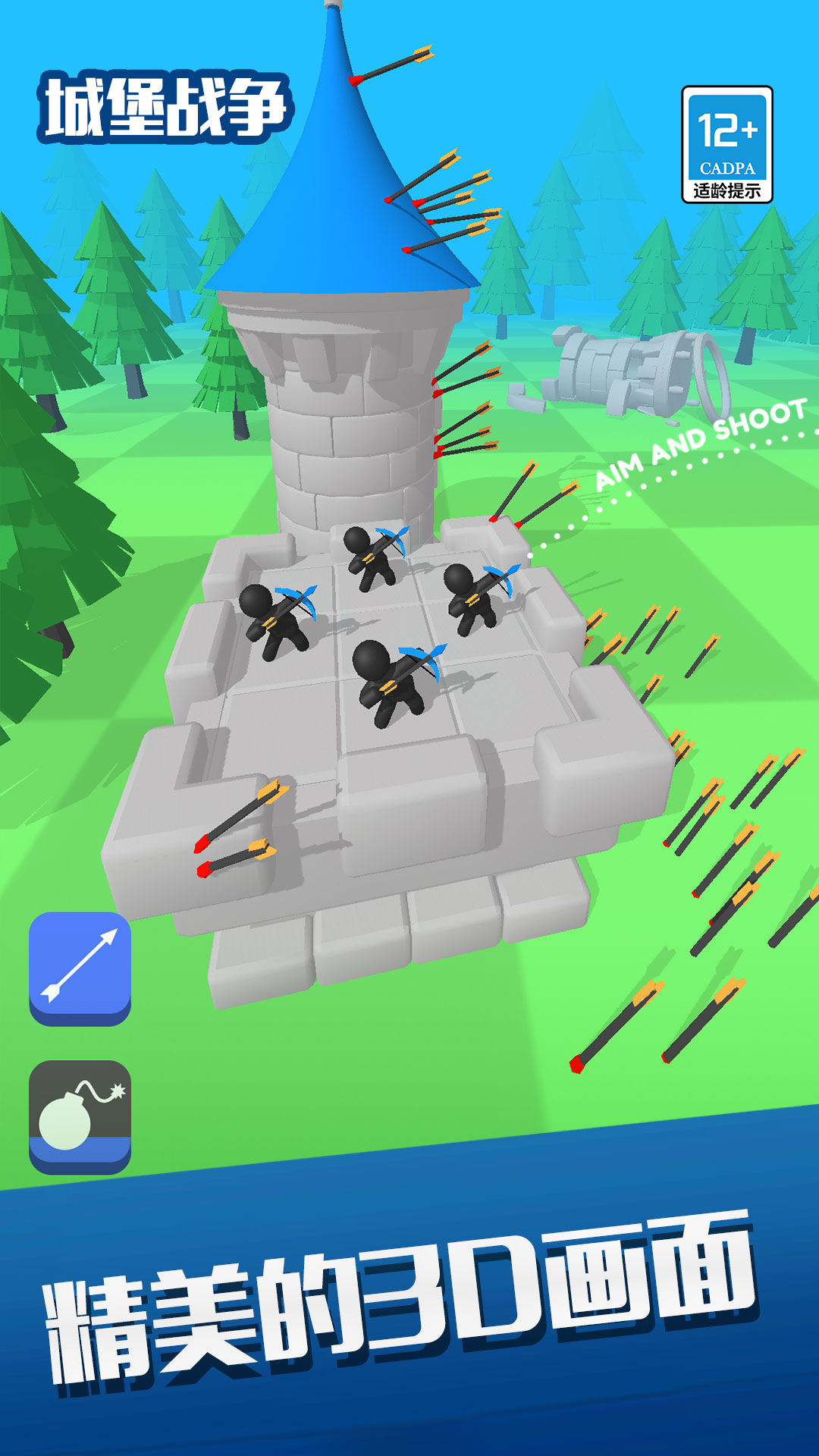 《城堡战争》采用精美的3D建模技术,将中世纪城堡的宏伟壮观完美呈现。无论是高耸的城楼、厚重的城墙,还是飘扬的旗帜,都让玩家仿佛置身于真实的战场之中。游戏还加入了物理引擎模拟,使得每一次射击的碰撞效果都真实可信,箭矢击中不同材质会呈现不同的破坏效果。