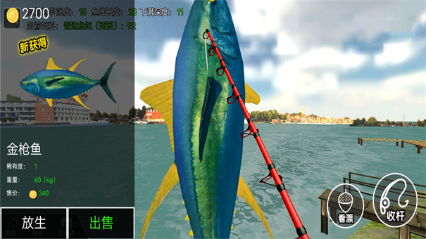 真实物理引擎,模拟鱼儿挣扎,感受每一次收线的紧张与兴奋。游戏采用先进的物理模拟系统,完美还原了鱼线张力、鱼竿弯曲度和鱼儿挣扎力度之间的关系。玩家需要根据鱼类的不同反应调整收线力度和角度,稍有不慎就可能让上钩的大鱼逃脱。