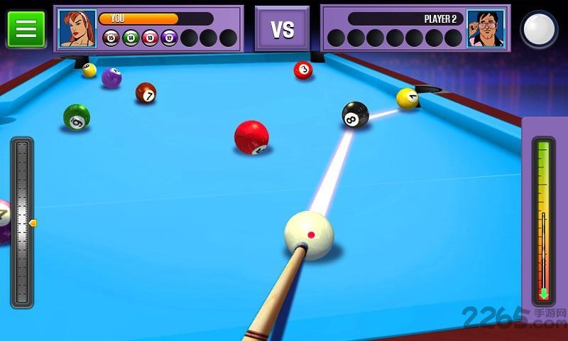 游戏采用国际标准的8球规则,比赛在两名玩家之间进行,分别选择全色球(1-7号)或花色球(9-15号)作为自己的目标球组。玩家必须首先将自己组别的球全部击入袋中,最后才能击打黑8球。若在击球过程中出现犯规(如母球入袋或未碰到任何球),则对手获得自由球机会,可以将母球放置在桌面任意位置继续击球。当一方成功将黑8球合法击入指定袋中,即赢得该局比赛。游戏支持Facebook账号登录,方便玩家邀请好友组队竞技,共同体验台球运动的乐趣。