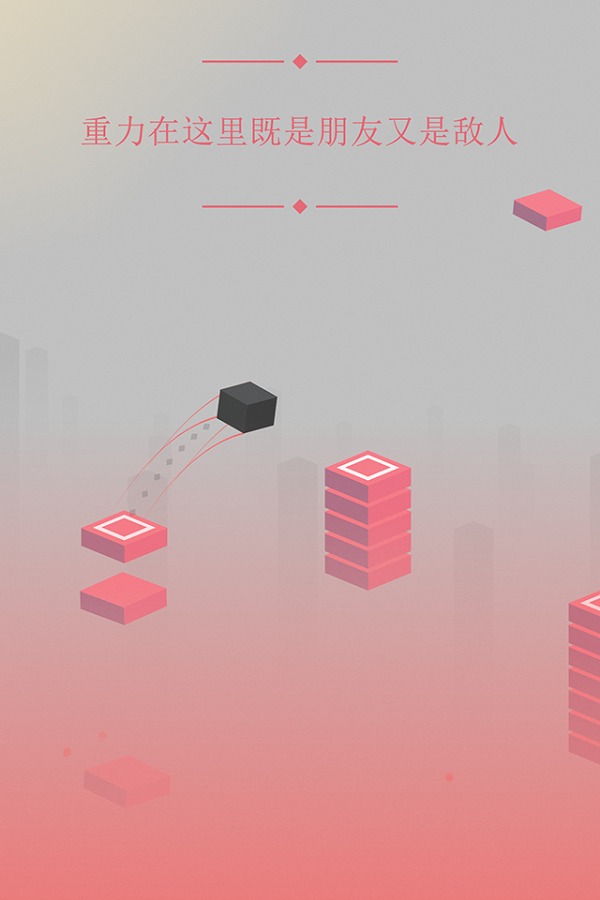 通过单指点击并拖拽绘制抛物线轨迹,松开瞬间释放方块完成精准跳跃,简单操作中蕴含丰富策略性。独特的物理引擎让每次弹跳都充满变数,需要玩家实时调整角度与力度。