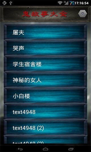 APP内包含大量经典恐怖作品,如《红馆》、《血衣》、《女生宿舍楼》等传统佳作,也有《屠夫》、《txet4985》、《熟悉的风声》、《撕心》等新锐恐怖故事。每周更新最新恐怖内容,保证故事库持续扩充。特别优化了音频效果,采用3D环绕音效技术,带来身临其境的恐怖体验。建议在WiFi环境下下载故事,可节省移动数据流量。