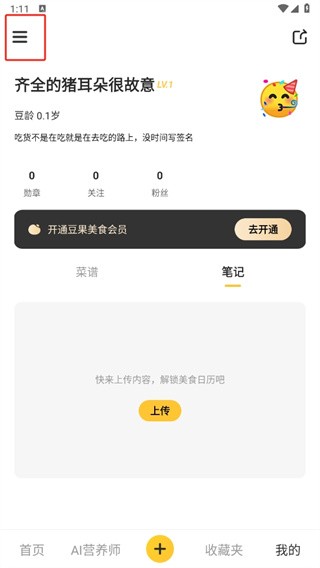 首先打开豆果美食APP,在首页底部导航栏找到并点击【我的】个人中心入口;