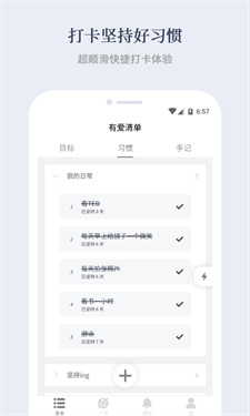 习惯培养体系:内置21天习惯养成法,通过每日打卡数据生成折线图,直观反映坚持趋势,当连续打卡中断时会触发温馨激励提醒。