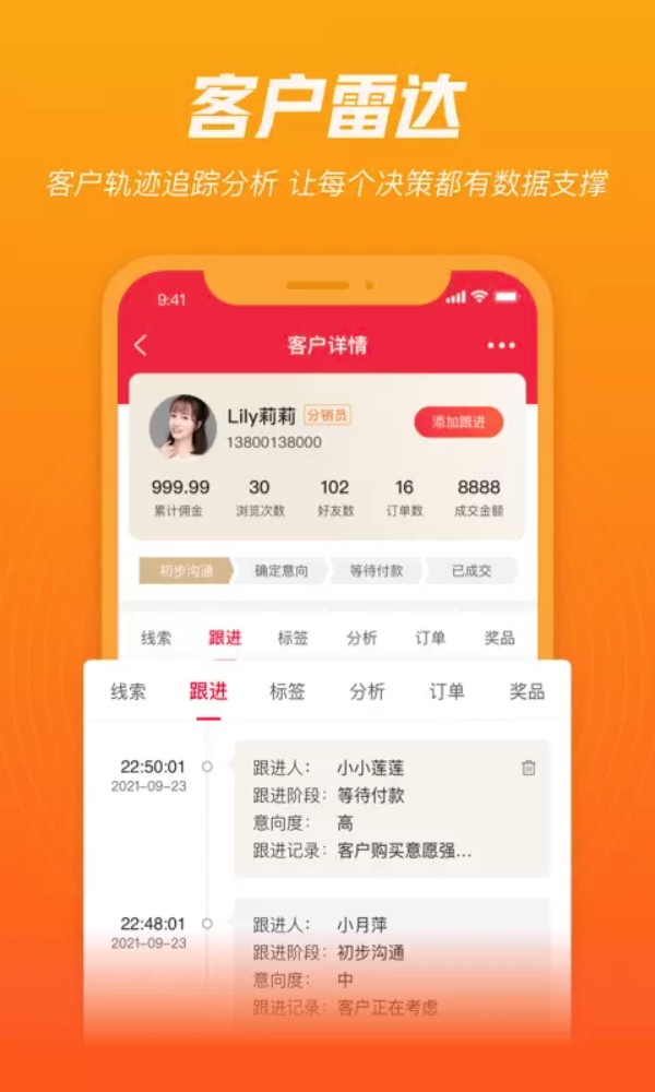 智能化客户管理:以客户生命周期管理为核心,系统自动记录完整的销售轨迹和客户互动数据。销售人员可随时查看客户动态画像,通过数据分析工具深度洞察用户需求,及时调整销售策略,实现精准营销。