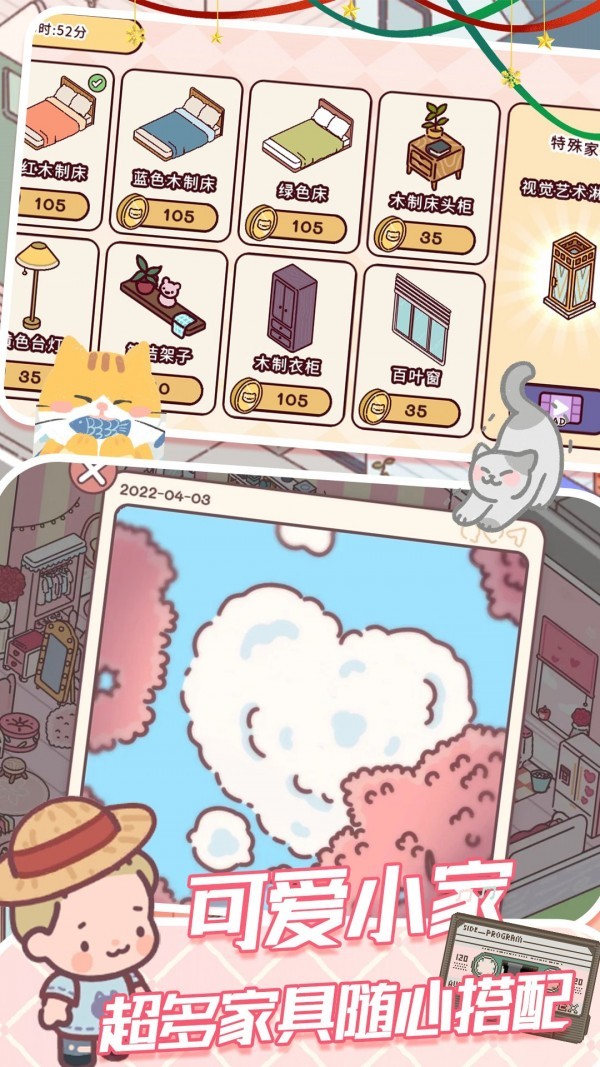 作为一款融合治愈元素的创新模拟游戏,它不仅提供家具摆放的创意空间,还加入了真实的宠物互动系统。玩家可以抚摸猫咪、观察它们的反应,细腻的画面表现与简约的UI设计相得益彰,营造出舒适愉悦的游戏氛围。