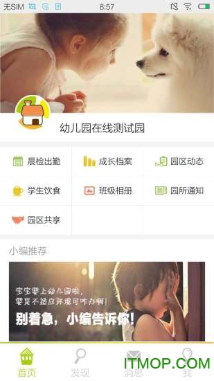 1、让家长"零距离"了解孩子在园动态:支持实时照片、视频分享,自动生成每日活动报告,详细记录饮食、午睡、课程参与等数据;