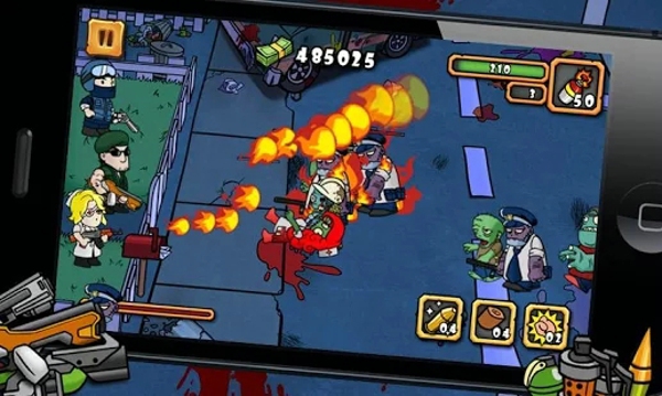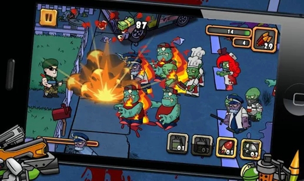 - 采用独特的血腥漫画风格画面,夸张的爆炸特效和僵尸死亡动画带来强烈的视觉冲击