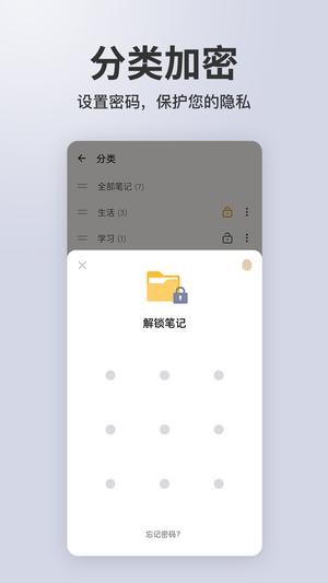 -密码锁:高级隐私保护功能,支持指纹解锁和密码保护,为您的私人笔记和敏感信息提供双重安全保障。