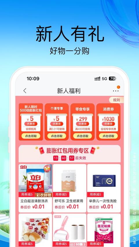 5. 限时抢券:每日提供限时抢券活动,用户可参与抢购高价值优惠券。