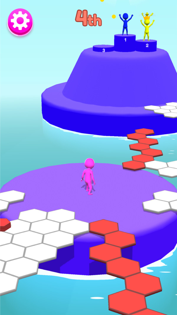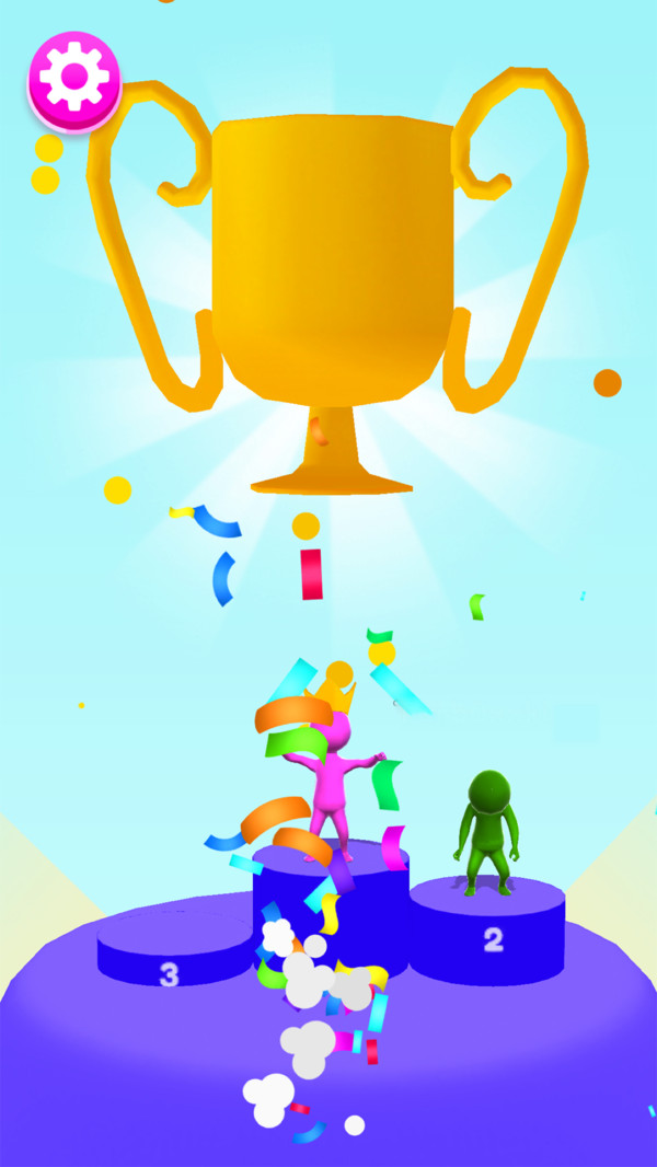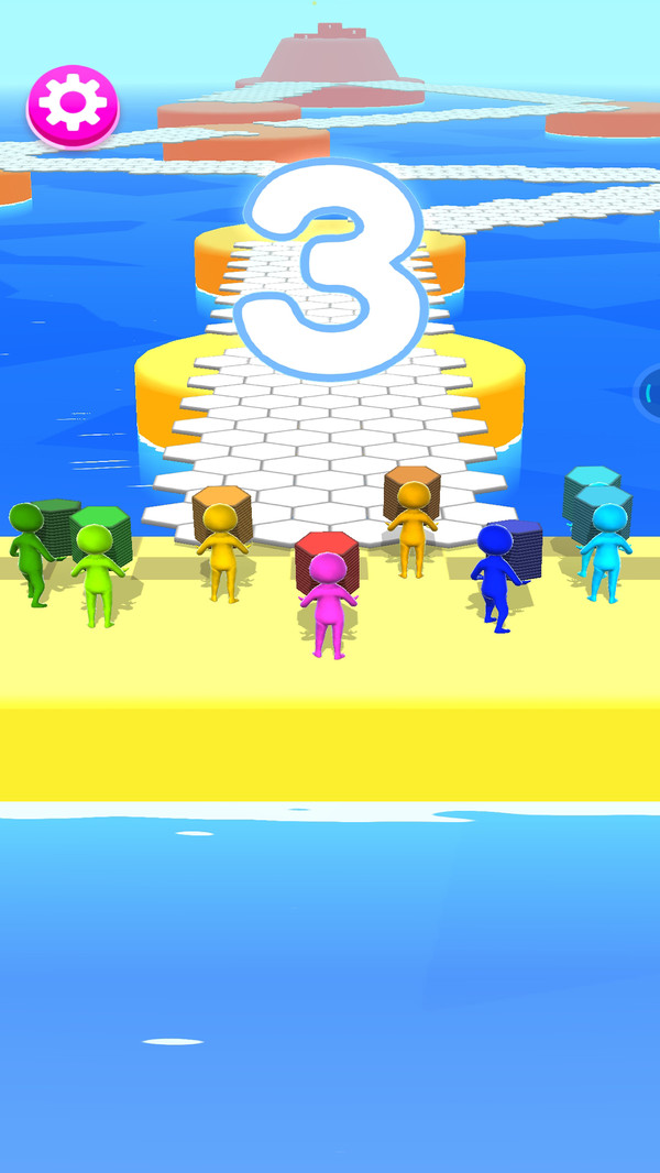 2.0版本"色彩革命"全面升级角色系统,现在玩家可以自由混搭橡胶人的四肢和头部颜色,创造出超过1000种独特组合。新增的"色彩同步"机制会让收集同色砖块时获得速度加成,但若连续收集错误颜色则会触发短暂眩晕。比赛终点现在变身为动态染色池,最先抵达的玩家可以为整个场景赋予自己的主题色。