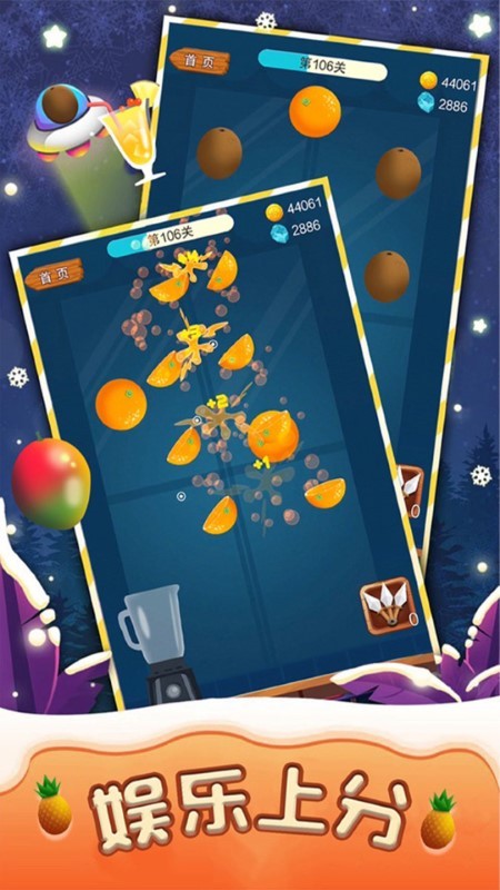 2、水果切割时的视觉效果令人惊艳,果汁飞溅、水果分裂的动画细节丰富,带来极佳的视觉享受;