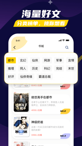 1、软件收录了全网最热门的高质量小说资源,支持实时更新提醒功能。用户可以将正在追更的小说加入书架,系统会自动跟踪更新进度,第一时间推送最新章节通知。同时提供书签功能,方便记录阅读进度,下次打开即可继续阅读。2、用户可以创建个性化书单,按照不同主题或喜好分类管理收藏的书籍。系统支持多设备同步功能,无论更换什么设备都能随时查看自己的书单。书单还支持分享功能,让您与好友交流阅读心得。3、强大的搜索引擎整合了全网优质书源,支持模糊搜索和高级筛选功能。无论是热门新书还是冷门佳作,都能快速找到最新最全的版本,确保读者不错过任何精彩内容。