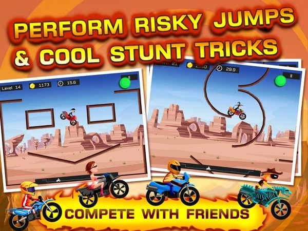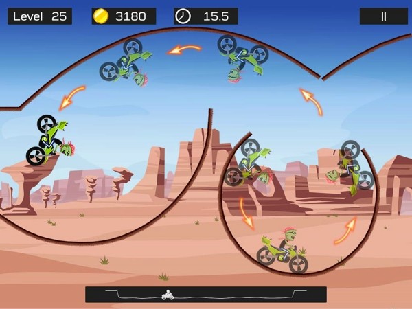 3、作为一款摩托特技竞速游戏,它通过简单直观的操作方式让玩家快速上手,但要获得高分需要掌握各种特技技巧。玩家需要精准控制摩托车通过复杂多变的赛道,在保证速度的同时完成各种高难度动作,获得的金币可用于解锁更多酷炫车型和赛道。