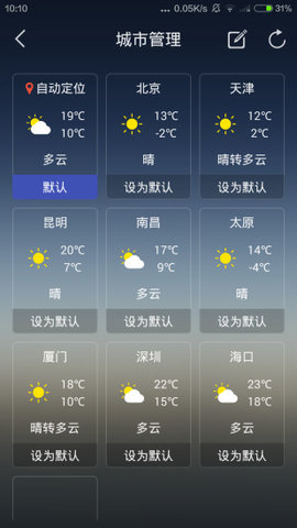 2、添加每个城市的信息,可以随时查看城市的天气;支持分组管理和批量操作,商务人士可同时监控多个出差地天气。新增城市天气对比功能,直观比较不同地区气象差异。