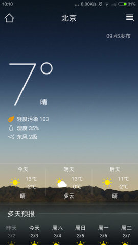 3、软件功能非常强大。它是日常生活和旅行的好帮手。特别开发旅行模式,可自动规划最佳出行时间。新增景点天气专题,提供热门旅游地特色天气预报。