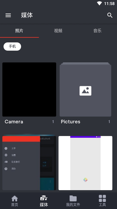 从顶部菜单栏选择文件类型(如音乐、照片、视频或文档等)。