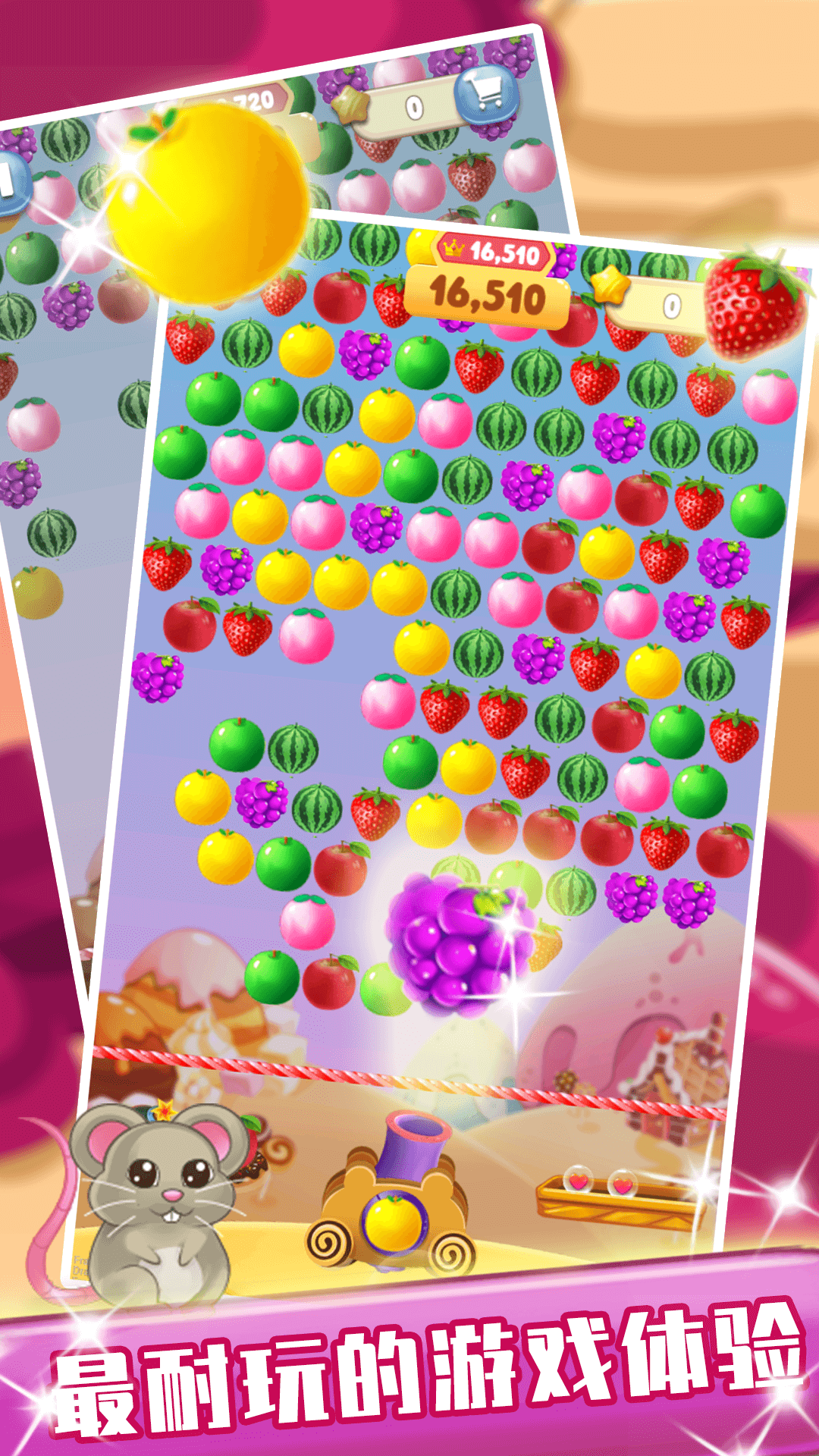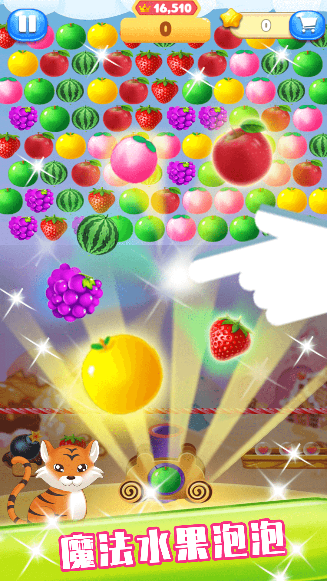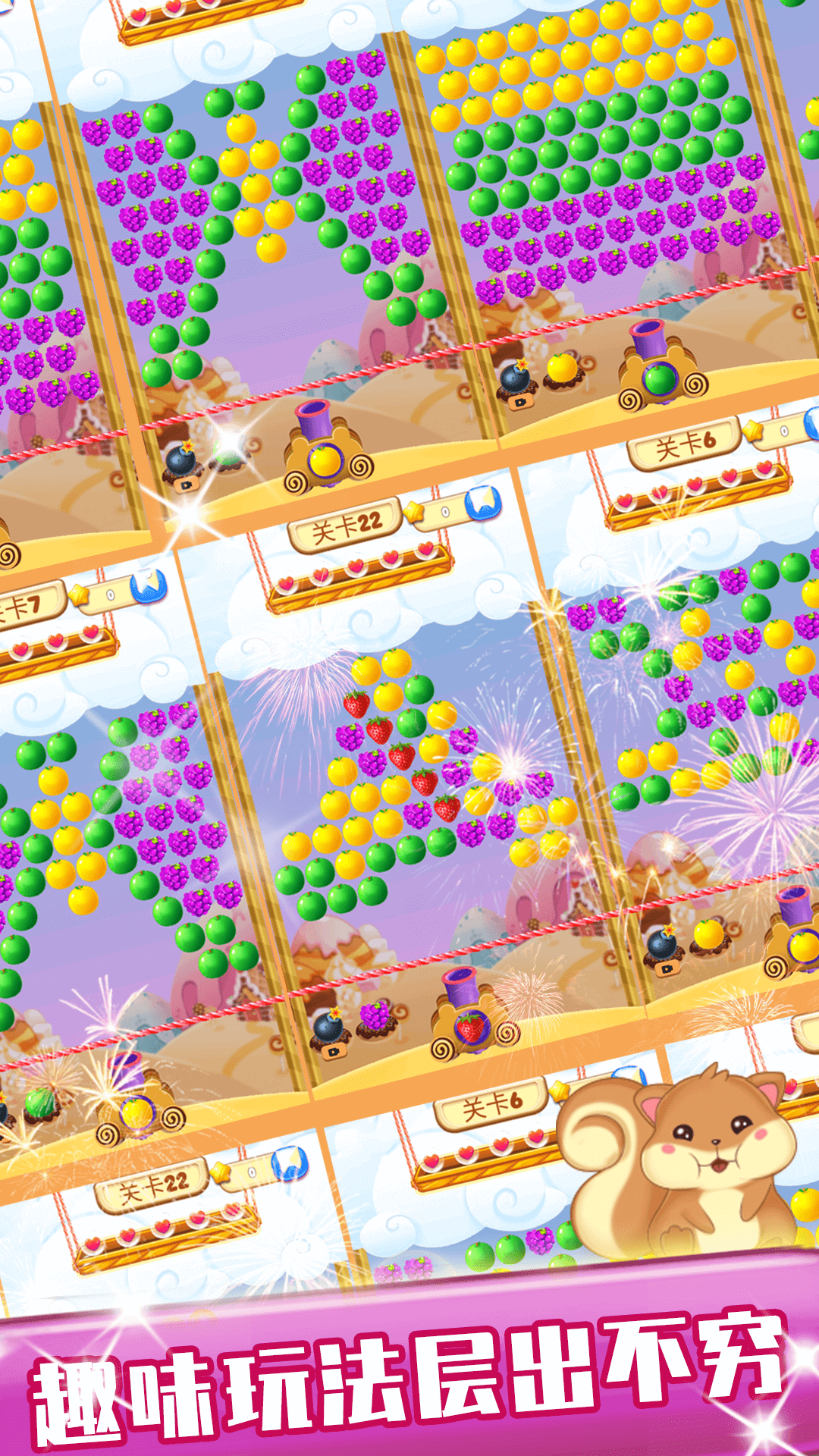 6、水果泡泡根据点击的方向发射:创新的触控操作方式,玩家可以通过滑动屏幕来调整发射方向,操作更加直观流畅。