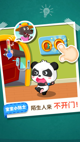 大情景:游戏设置了多个贴近生活的安全场景,如应对陌生人敲门、避免插座触电、预防误食危险物品等。每个情景都经过精心设计,让孩子在模拟实践中学会识别和规避各类居家安全隐患。