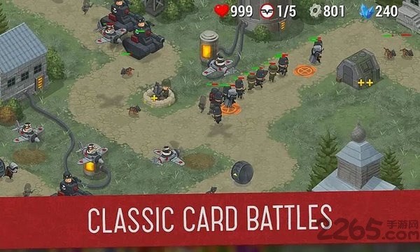 游戏独创的卡牌战斗系统让策略玩法更加丰富多变。玩家需要收集并合理使用各类兵种卡牌,通过巧妙的卡牌组合来击败强大的敌人。每张卡牌都拥有独特的属性和技能,如何搭配出最强卡组将成为制胜关键。