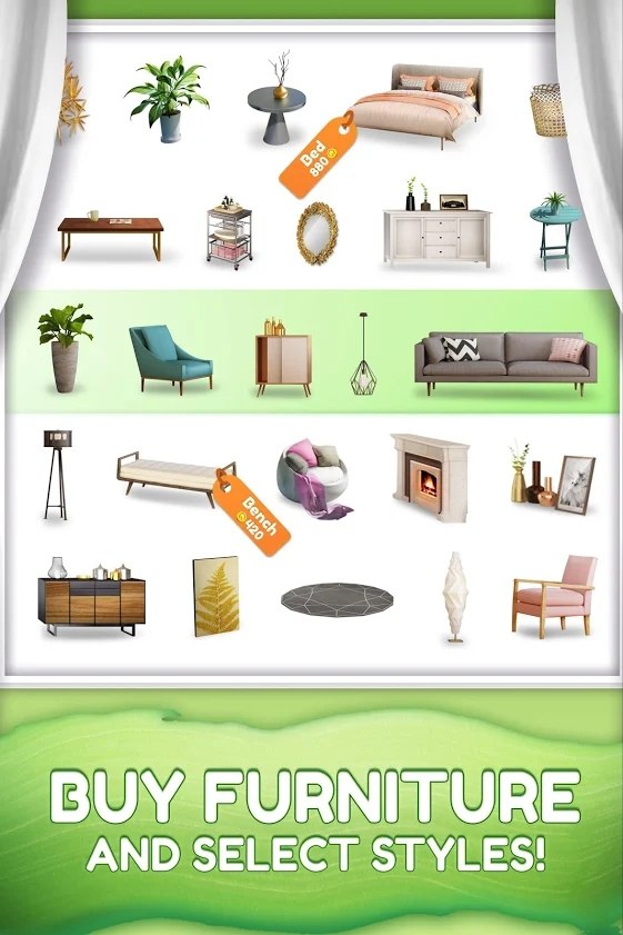 3、色彩搭配评分系统会对家具选择给出专业建议,完美配色可激活"风格大师"加成,使后续5关获得额外移动步数;