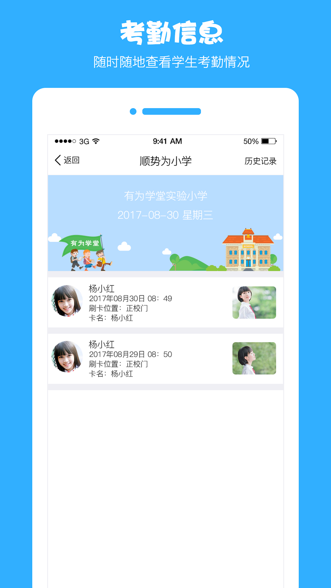 1、学生考勤:系统会实时推送学生的出入校信息,家长可以第一时间掌握孩子的到校和离校时间,确保孩子的安全。同时,考勤数据会自动生成统计报表,方便家长和老师共同关注学生的出勤情况。