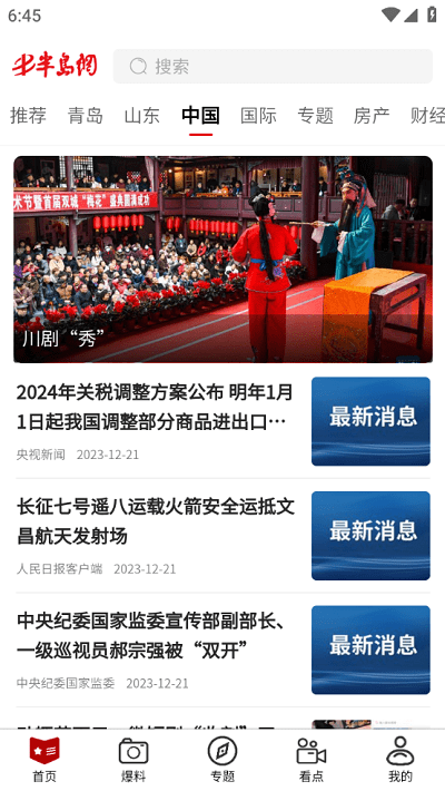 半岛网青岛新闻网是一款专为青岛市民打造的融媒体资讯平台,集新闻浏览、生活服务和社交互动于一体。作为青岛地区最具影响力的新闻客户端之一,它整合了半岛都市报、城市信报等权威媒体资源,为用户提供最新鲜的本地新闻、国内外热点资讯以及文娱体育报道。平台不仅支持实时新闻更新,还提供便捷的政务服务和生活资讯查询功能,让用户足不出户就能掌握青岛大小事。通过智能推荐算法,为用户打造个性化的阅读体验,是青岛人了解城市动态、参与社区互动的首选平台。