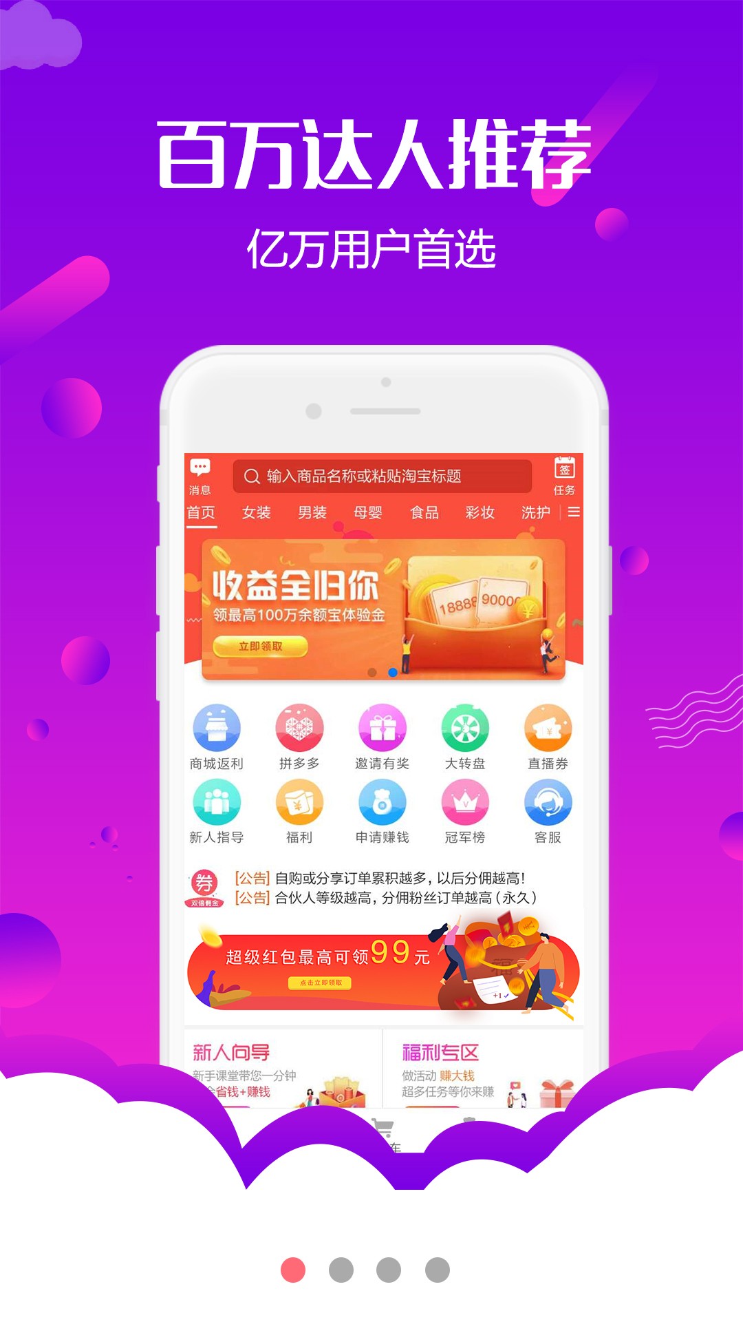 2、与朋友分享优惠券还可以赚取收益,同时朋友也会获得返利,非常的划算。平台推出"合伙人计划",用户邀请好友注册并使用APP购物,双方都能获得额外返利奖励。分享次数和收益不设上限,真正做到"越分享越赚钱",让社交裂变为用户带来持续收益。