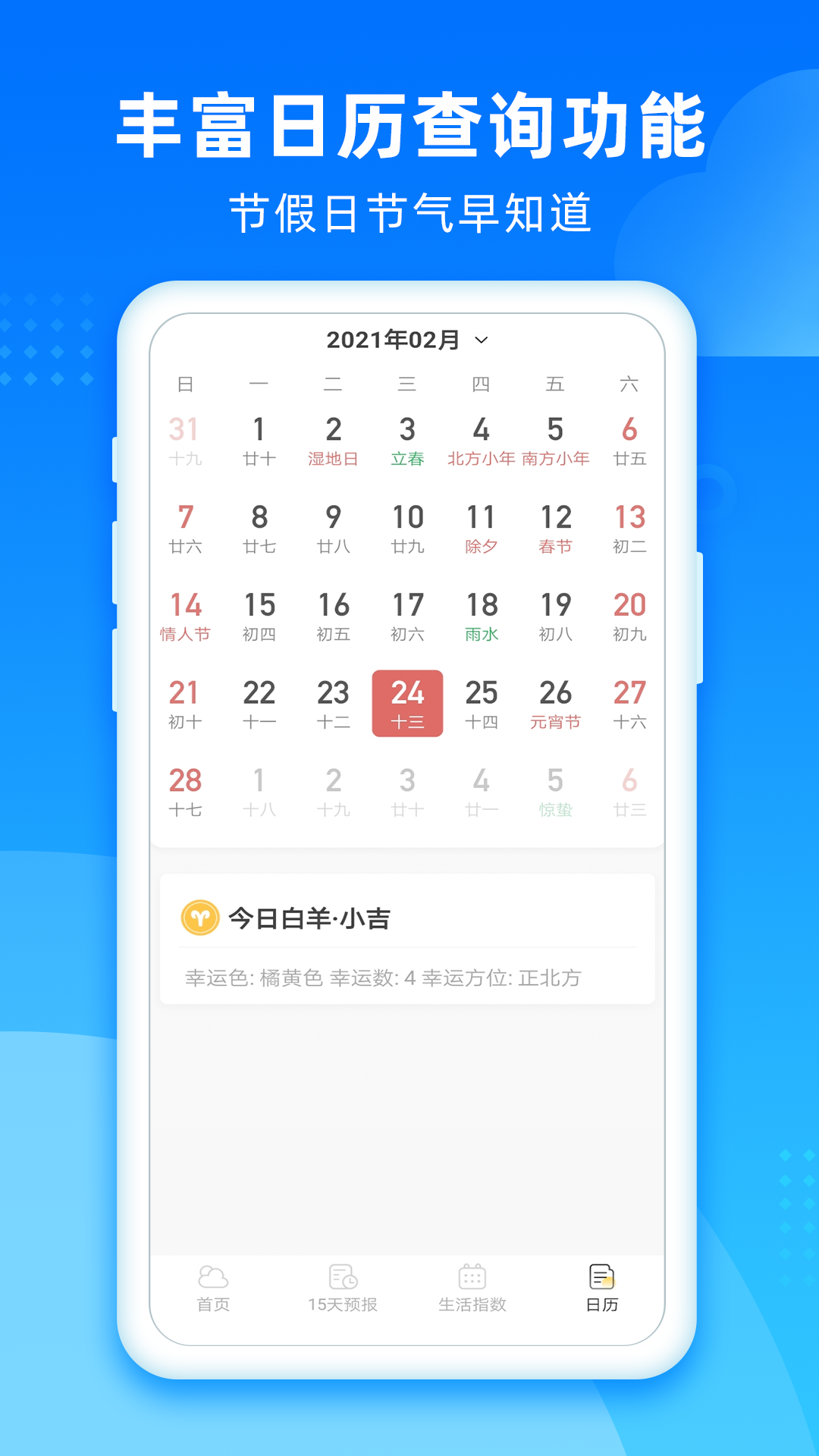5、多功能日历:提供公历、农历、黄历查询,以及节假日提醒服务,满足您对日期信息的各种需求。