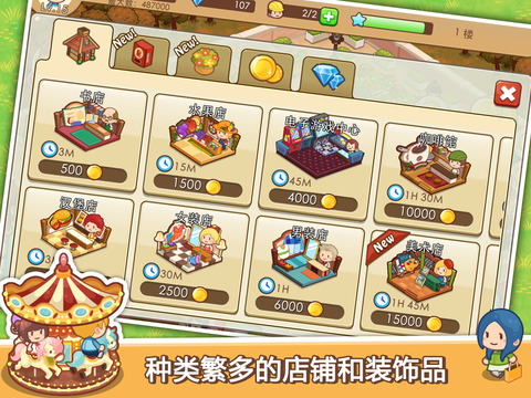 游戏中提供了丰富多样的设施和装饰品,包括餐厅、烘培店、服装店等各类店铺。玩家需要合理规划商场布局,通过投资新商品来吸引不同类型的顾客。及时满足顾客需求可以积累"大热卖星星",触发特殊促销活动。在"大热卖"期间,商场将迎来大量顾客,带来可观的收益。此外,玩家还可以通过升级店铺、优化商品结构等方式提高经营效率,打造最具人气的购物中心。