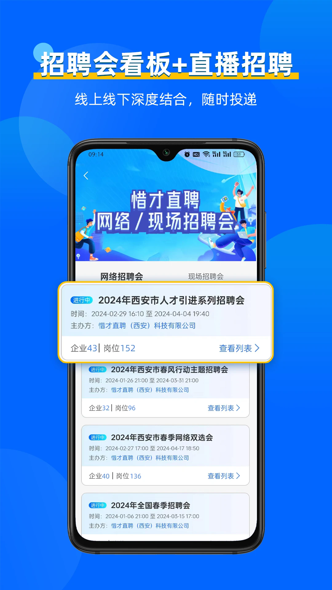 【服务更全面】惜才直聘以人才招聘为核心,同时提供就业指导、技能培训、职业测评等增值服务。平台定期组织线上线下招聘会,及时传达最新就业政策,打造全方位的就业服务体系。