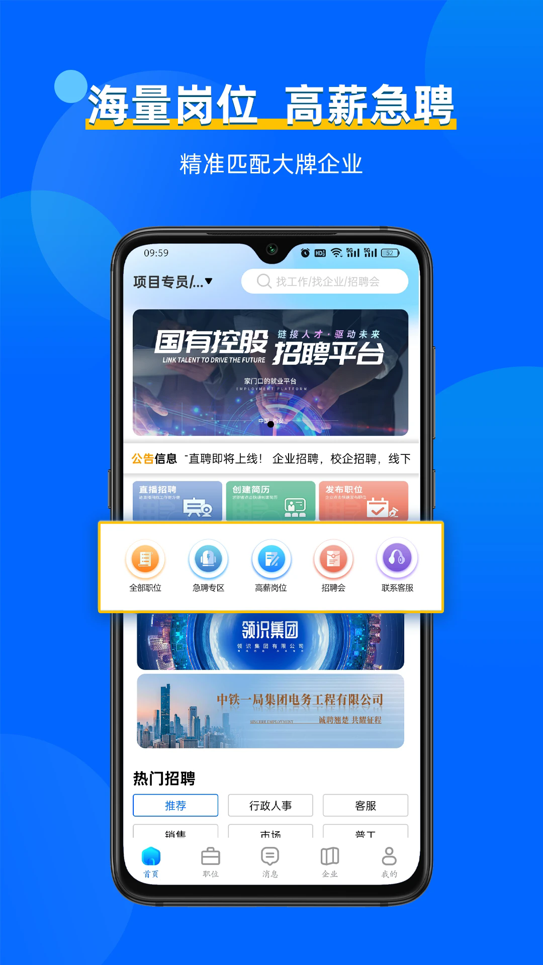 1、平台汇集了全国各地的优质工作岗位,涵盖互联网、金融、教育、制造等数十个行业,用户可以根据自身需求自由筛选;