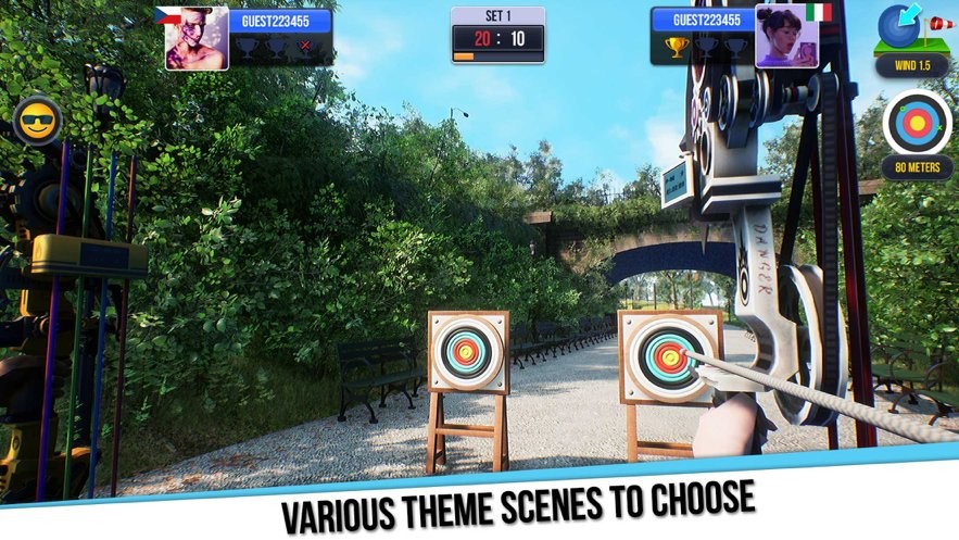 丰富的射箭场景,让你射箭同时身临其境,还有可爱大熊猫给你助威。场景设计涵盖世界各地著名射箭场地,从奥运会场馆到野外狩猎场,每个场景都有独特的视觉风格和挑战要素。