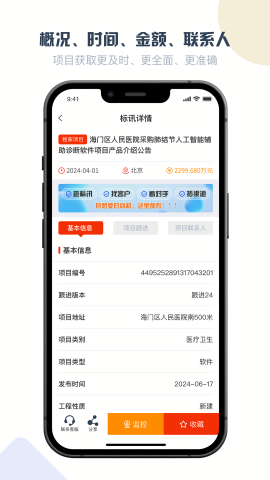 5. 搜索结果出现后,点击相关标讯,即可查看具体的详情页面。详情页面包含项目描述、截止时间、联系方式等完整信息,方便用户进一步跟进。