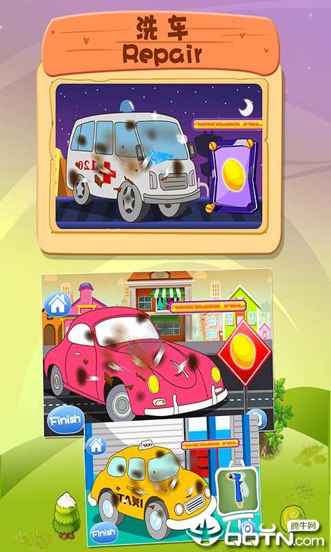 益智说明:通过反复的洗车操作,孩子能自然而然地养成保持清洁的好习惯。游戏特别设计了污渍分类系统,教导孩子区分不同类型的污渍需要采用不同的清洁方法。这种任务分解的训练,能培养孩子处理事务的条理性和系统性思维。同时,游戏还潜移默化地传递环保理念,让孩子明白保持环境整洁的重要性。