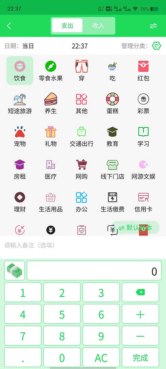 1、软件为用户提供了诸多科目标签,为用户提供快捷的科目选择。测试发现系统预设了超过200个常用记账科目,覆盖日常生活各个方面。用户还可以自定义添加专属标签,满足个性化记账需求。