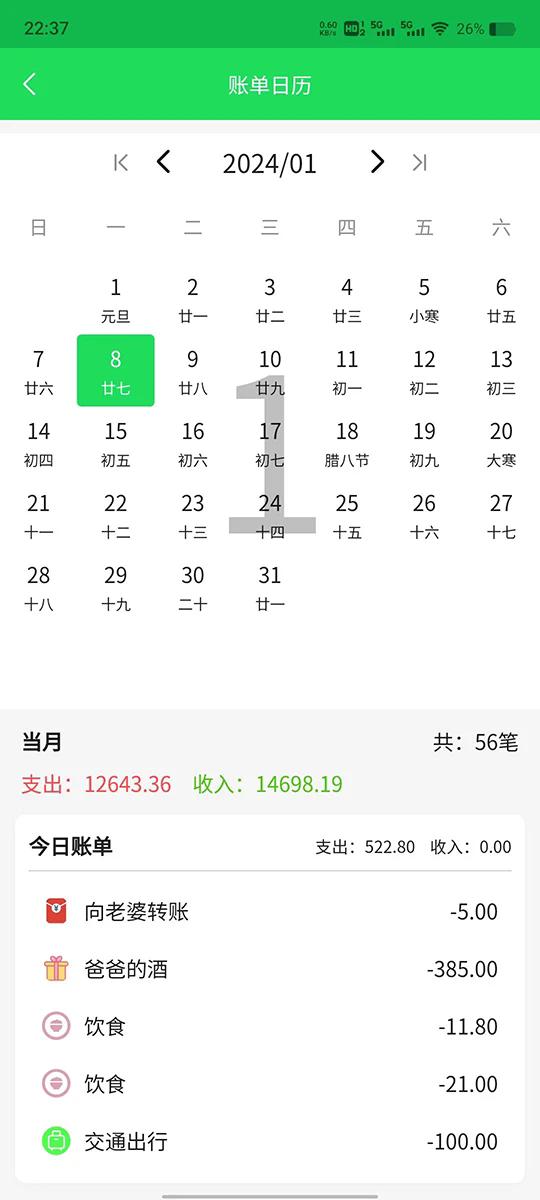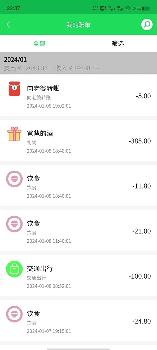 3、所有的记账操作带给大家,满足大家的记账需求,这里可以让你轻松在线记账使用!支持多种记账场景,包括现金、信用卡、电子支付等多种支付方式。系统会自动归类整理,生成完整的财务记录。